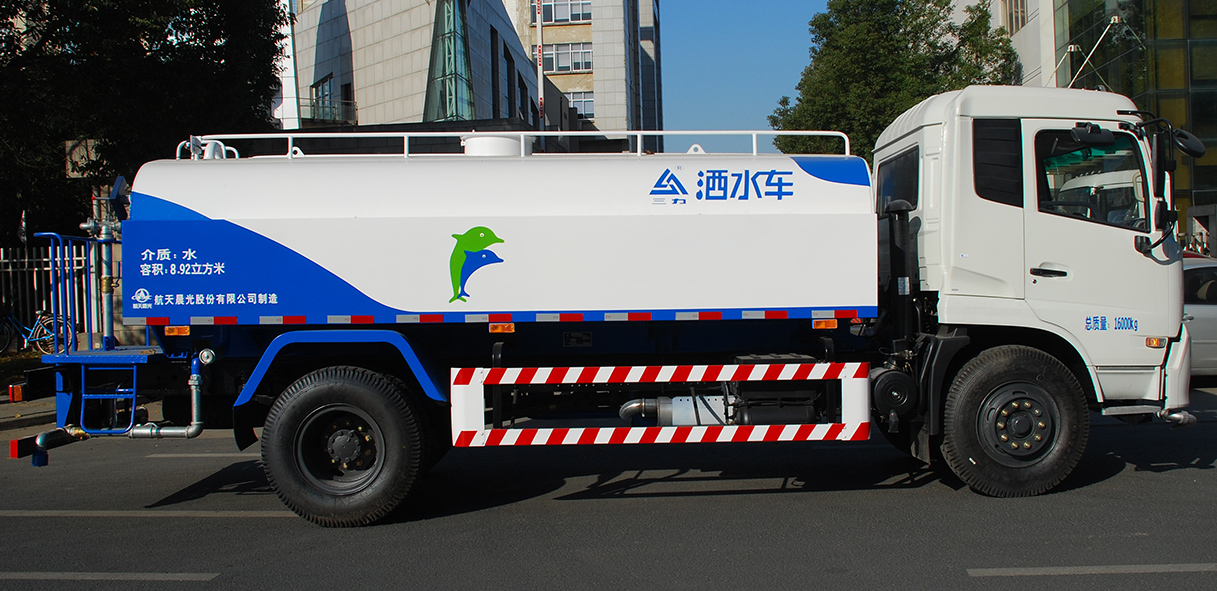 CGJ5160GSS02型灑水車具有五大功能:a. 對路面進行沖洗、灑水;b.運輸功能;c. 應急消防;d. 對樹木園林進行噴洗、澆灌養護;e. 作移動泵站。是專門用于城鎮道路、公路、橋梁、工程、工地等路面沖洗、灑水、降塵以及園林綠化噴洗和澆灌的專用車輛。